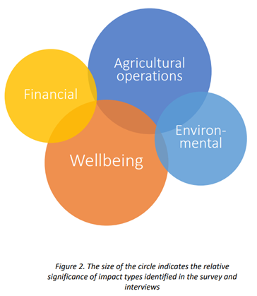 It is not surprising then, that when it comes to assessing impacts, our research validated 34 individual impacts across the areas of agricultural operations, wellbeing, financial and environmental.