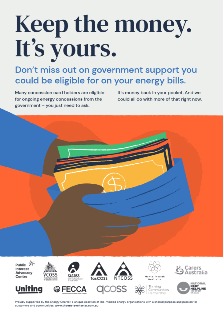Ongoing energy concessions can help reduce electricity and gas bills. Today, many people are facing increasing energy prices and other cost-of-living pressures; however, around 60% of people who are eligible for ongoing concessions are not taking them up.