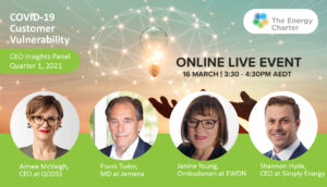 Energy Charter signatories Jemena, ActewAGL, Energy Queensland, Essential Energy and Powershop, together with #BetterTogether Collaborator Simply Energy, are collaborating with Deloitte to expand this research nationally in four quarterly rounds over 2020-2021. The insights will be leveraged to better understand customers impacted by COVID-19 and how the energy sector can help them. We are working closely with a Customer Outcomes Group made up of a number of customer representatives and advocates to help strategically guide the research and outcomes.