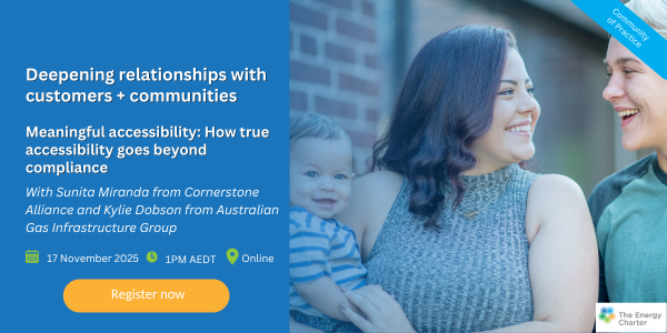 In an increasingly complex energy landscape, the ability to genuinely connect with customers and communities is no longer optional – it’s essential. The Energy Charter’s new Community of Practice builds on our foundational work to create deeper, more meaningful engagement with diverse communities throughout Australia’s energy transition.