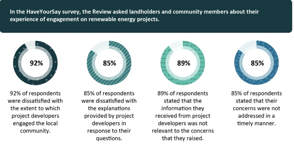 The Dyer Review aimed to strengthen trust, transparency, and collaboration by gathering insights from landholders, local communities and key stakeholders living near renewable energy developments.